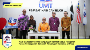Naib Canselor UMT, Profesor Ts. Dr. Mohd Zamri Ibrahim telah menerima kunjungan hormat Ketua Pengarah Pusat Pencegahan Jenayah Kewangan Nasional (NFCC), Dato’ Sri Shamshun Baharin