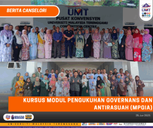 24 Jun 2025 – Unit Integriti UMT dengan kerjasama Pusat Pengurusan Bakat dan Inovasi (PPBI), UMT telah menganjurkan Program Modul Pengukuhan Governans, Integriti dan Antirasuah