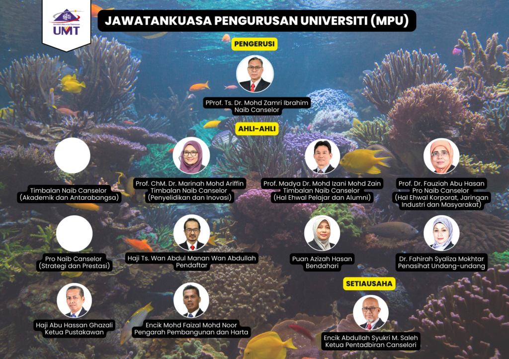 The Vice-Chancellor’s Office also acts as the Secretariat of the UMT University Management Committee (MPU) Meeting. In general, MPU will convene at least 6 times a year to discuss University governance matters.